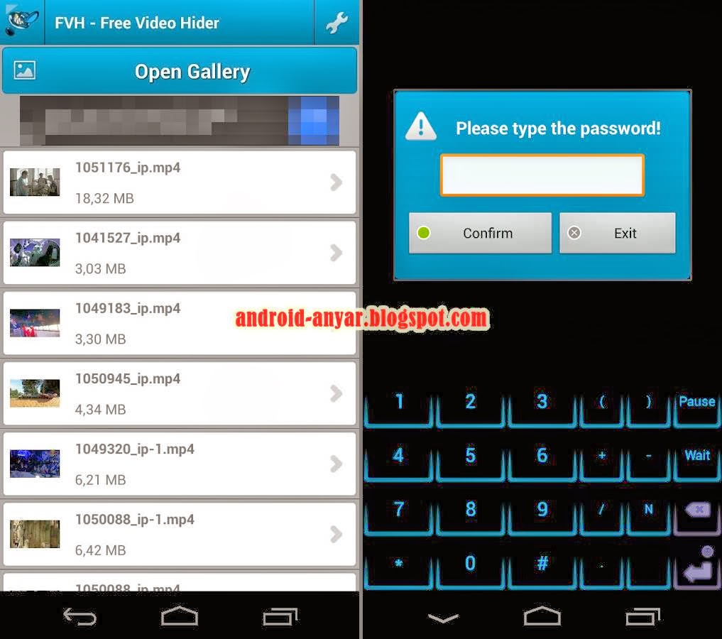 Untuk cara menggunakan FVH – Free Video Hider sangat mudah dan sederhana. Setelah Anda instal aplikasi FVH ini, silakan buka. Anda akan disuguhkan tampilan untuk mengisi password (kata sandi). Password ini digunakan sebagai kunci pengaman agar orang lain tidak bisa membuka koleksi video atau film di galeri Android Anda. Jadi, selalu ingat password FVH Anda agar hanya Anda yang bisa melihat kumpulan video pribadi atau film rahasia di HP Android Anda sendiri.