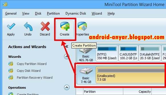 - Pilih lagi drive SD card Anda (ditandai dengan *: yang artinya Unallocated atau kosong), klik ‘Create‘.